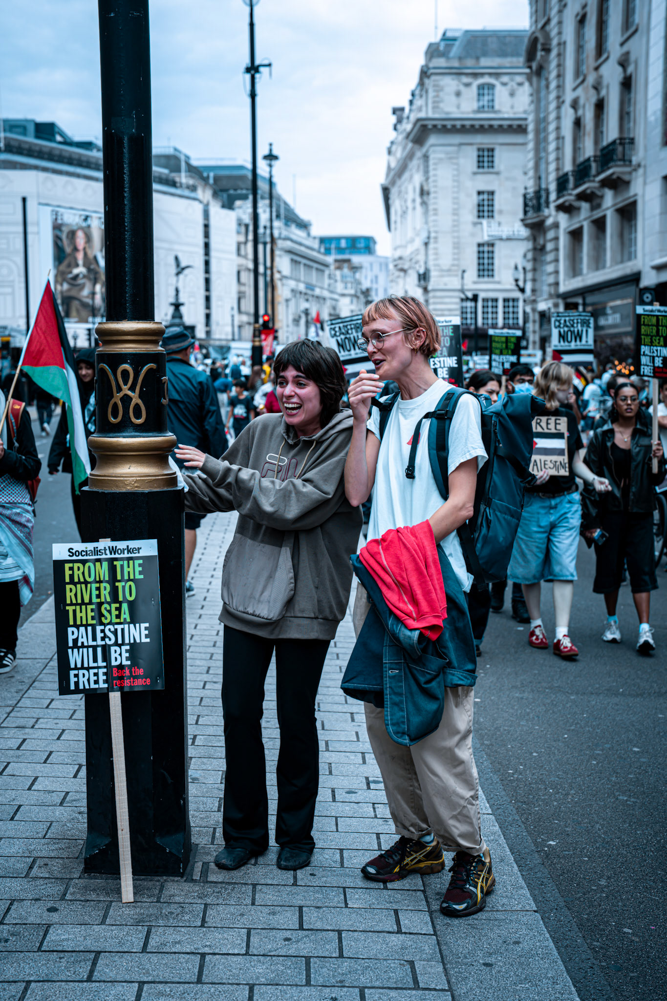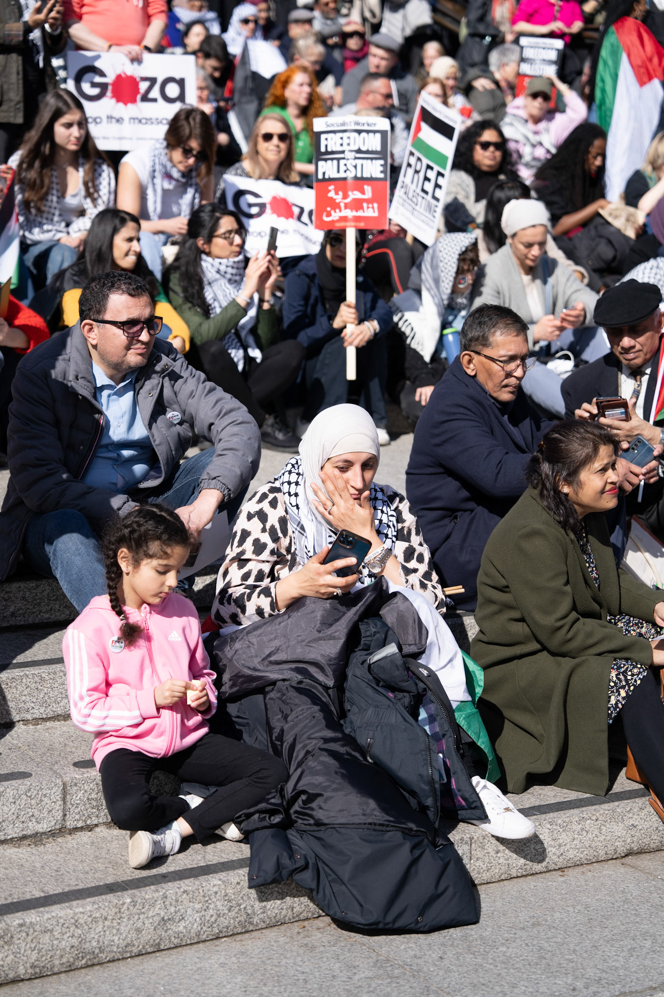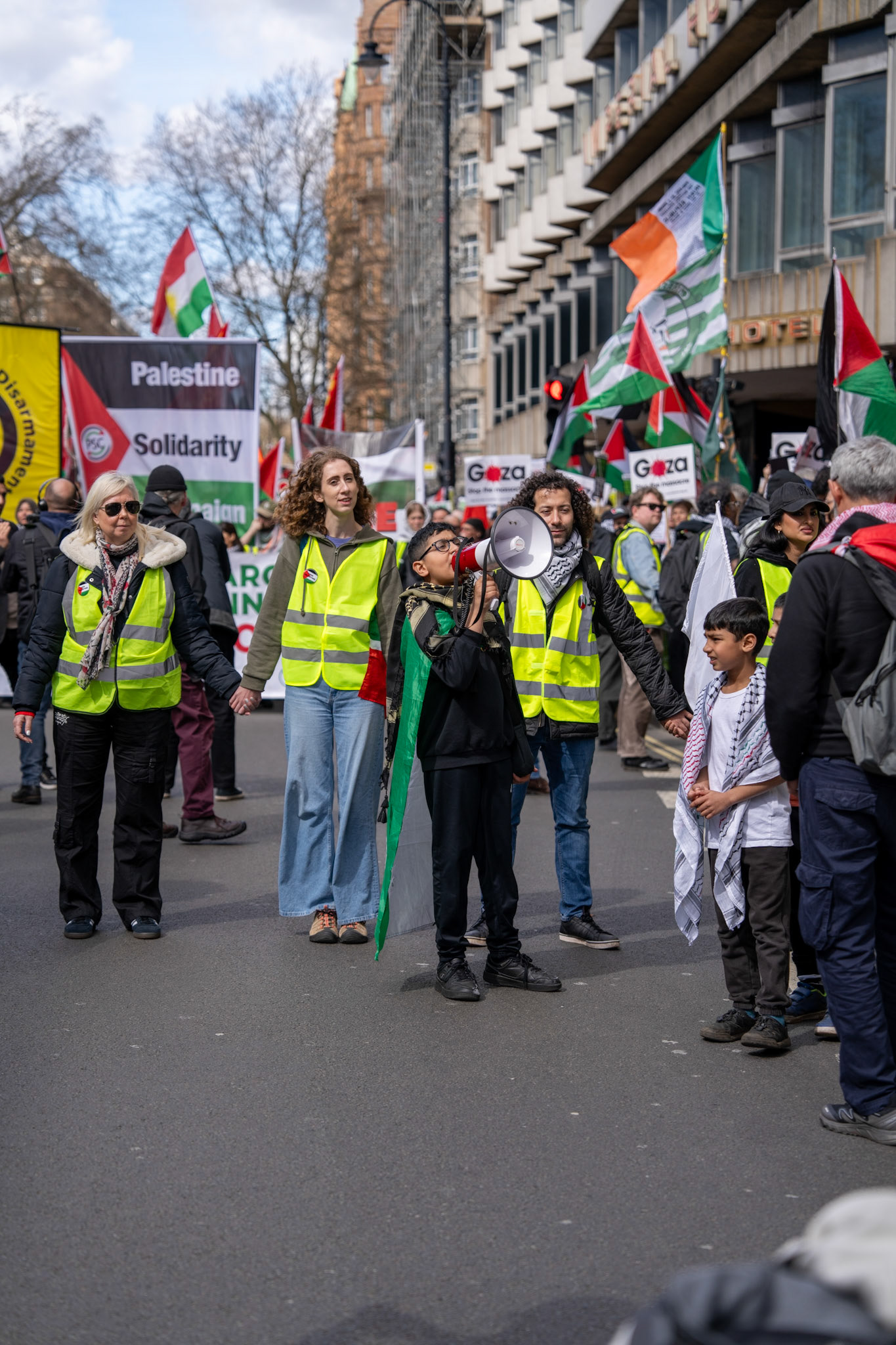 Thousands of pro-Palestinian protesters marched through central London reiterating calls for a ceasefire in Gaza.