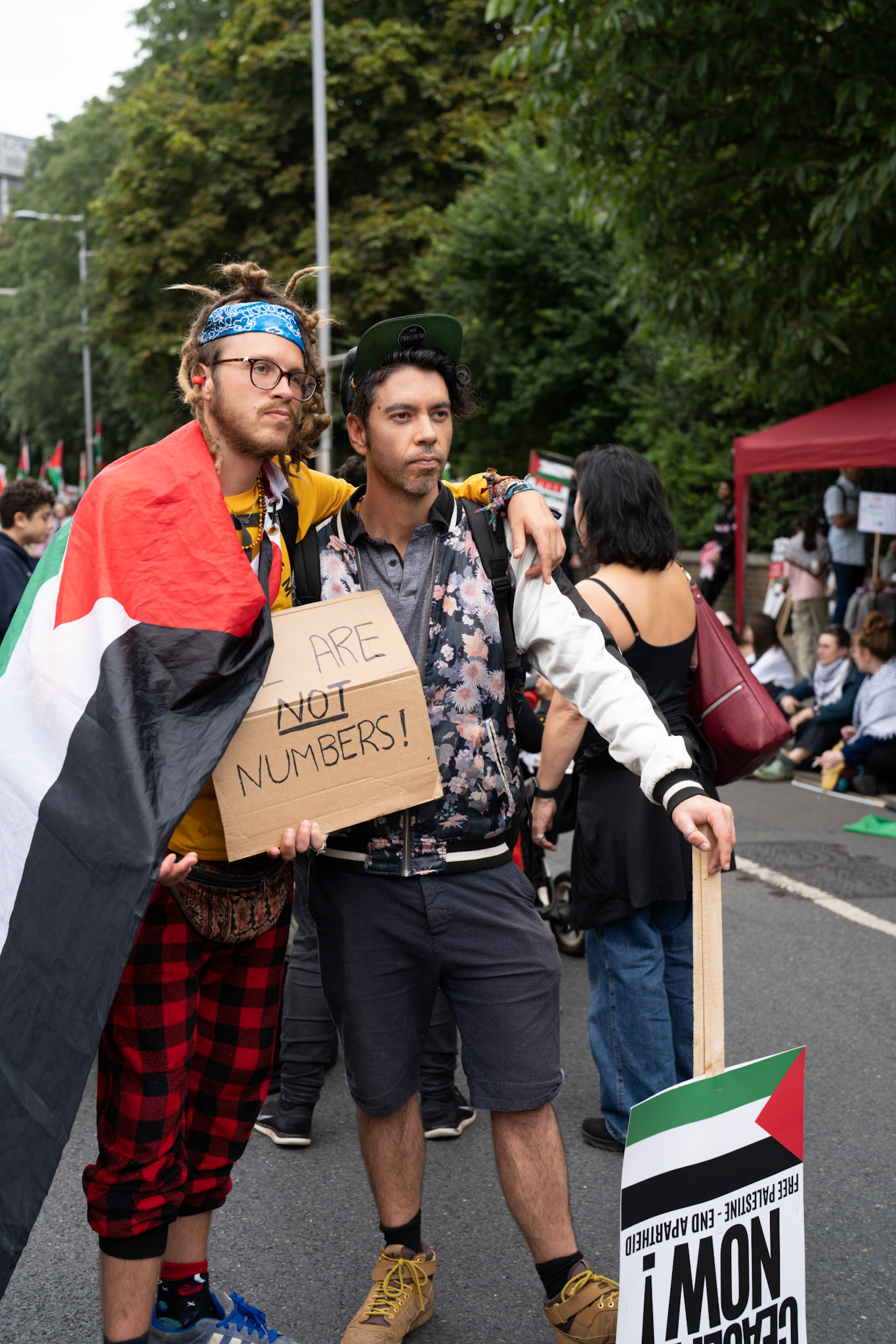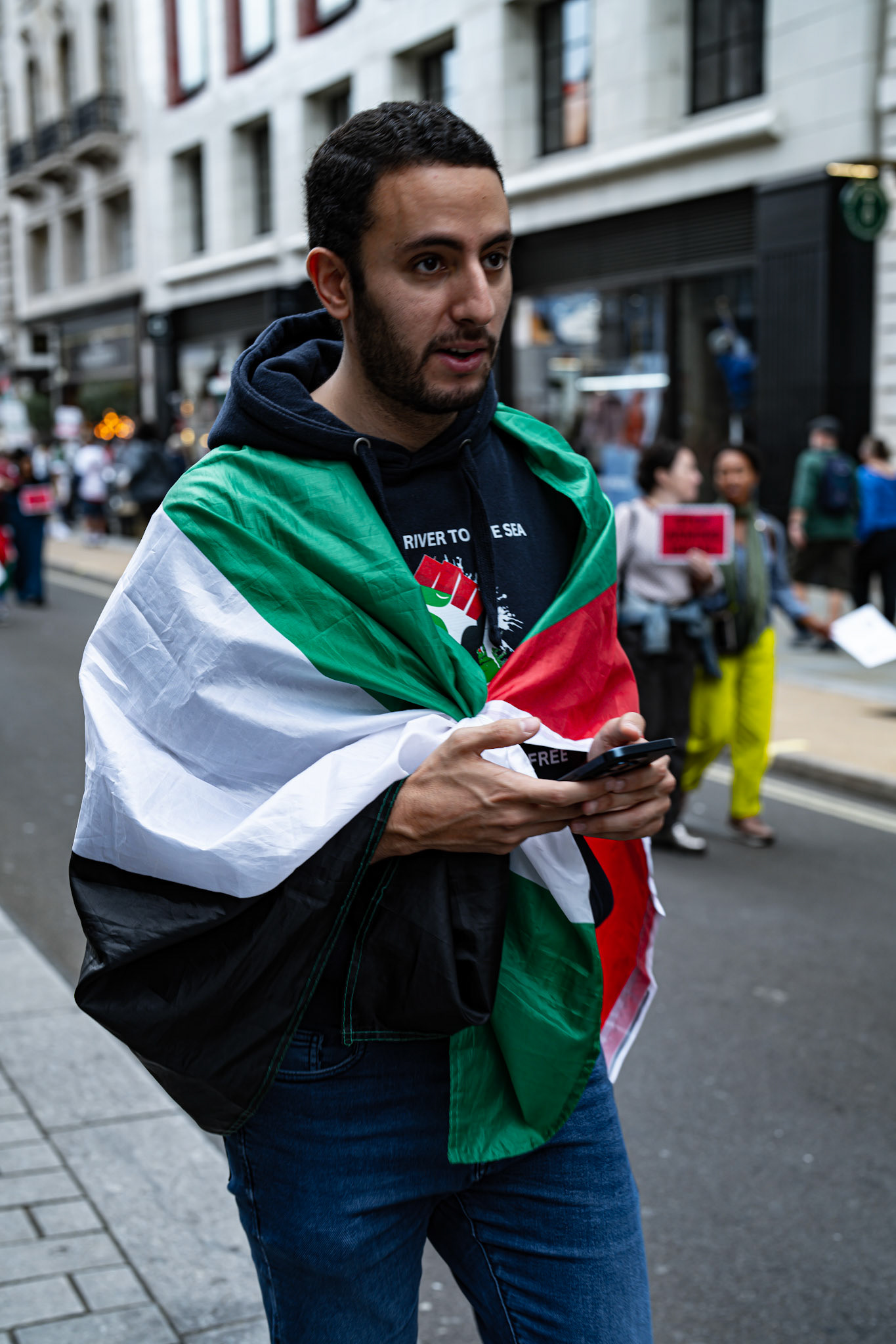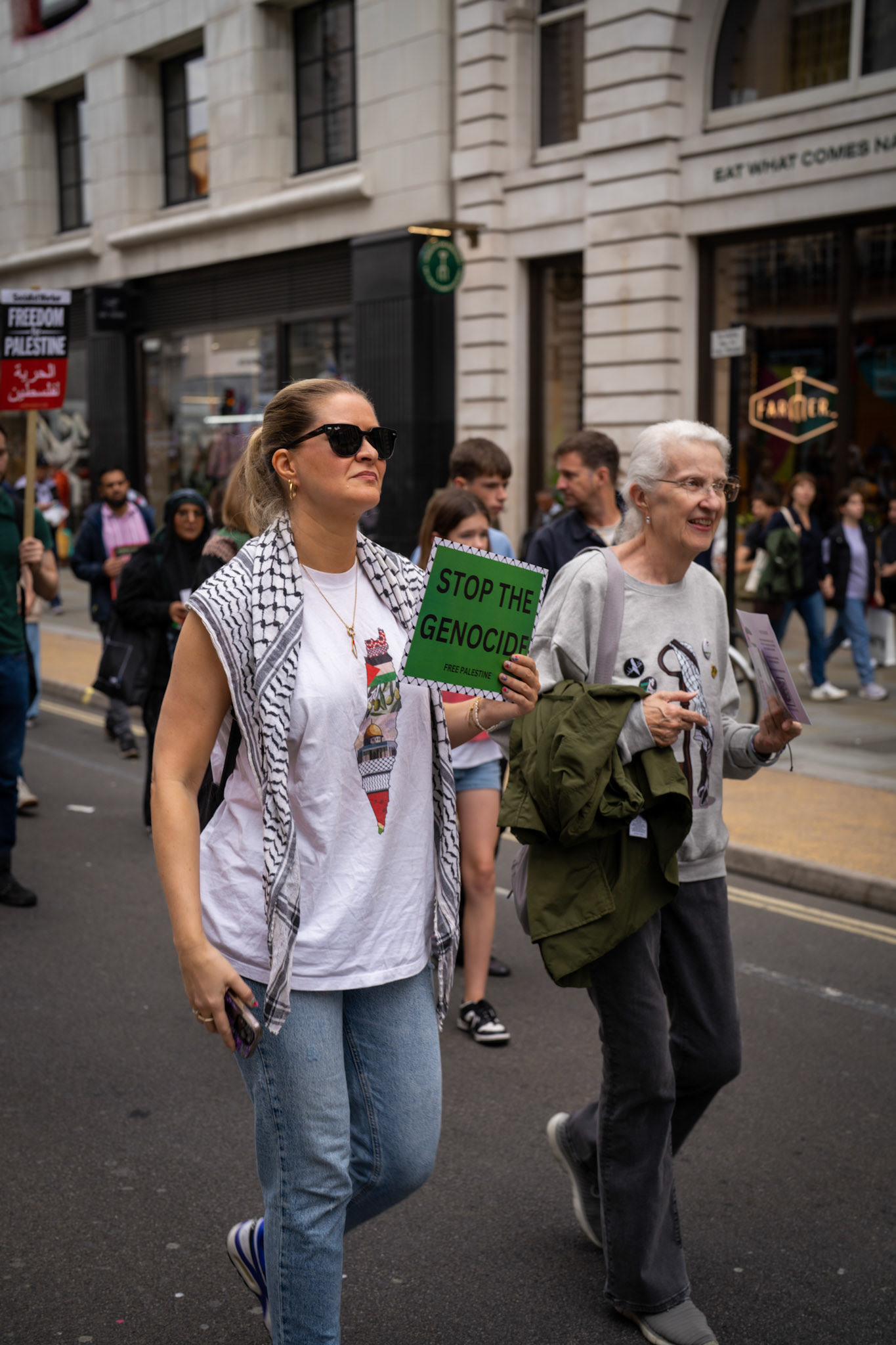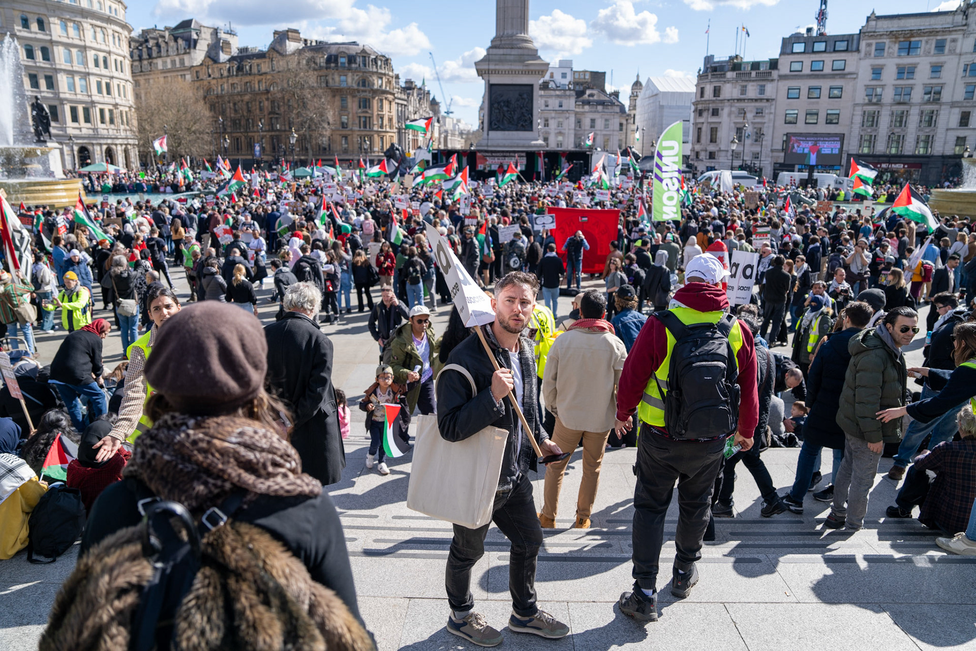 Thousands of pro-Palestinian protesters marched through central London reiterating calls for a ceasefire in Gaza.